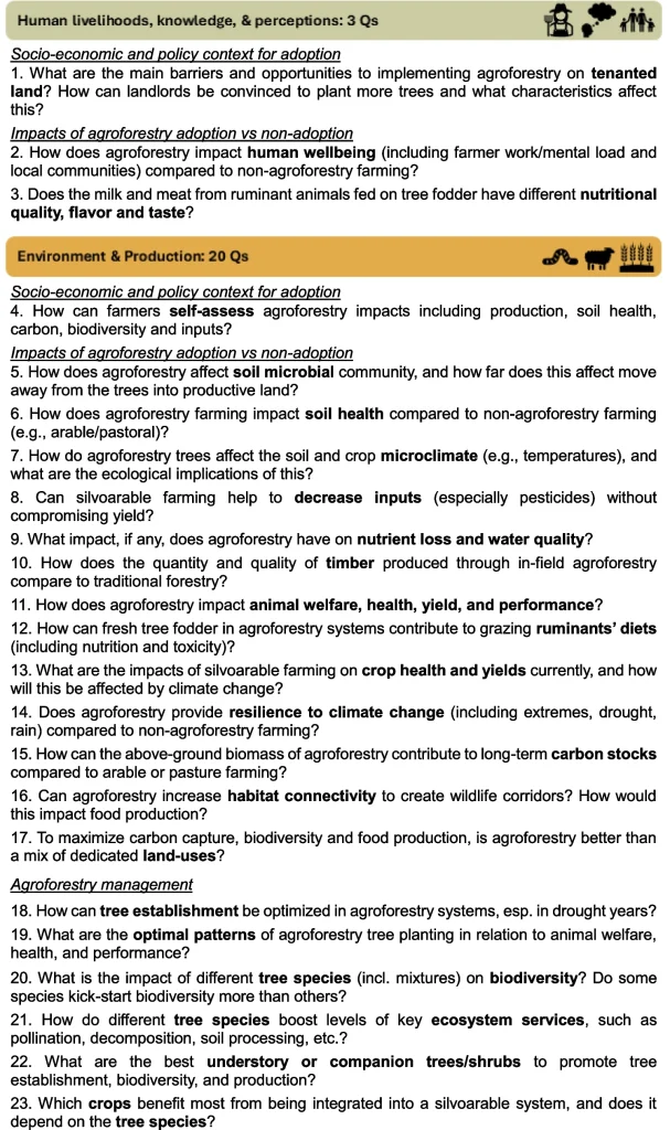 The ‘Top 40’ questions are highlighted below, and the full journal article can be accessed for free at: https://link.springer.com/article/10.1007/s13593-026-01089-8